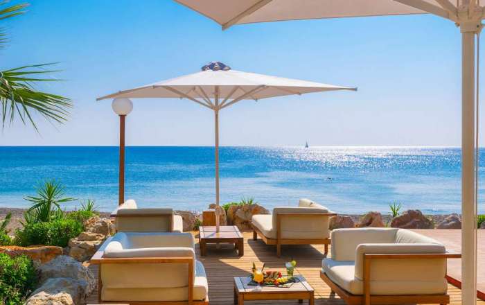 For a relaxed atmosphere channelling cosy spaces filled with natural light from the large windows that afford magnificent views of the sea head to the Crystal Lounge Bar, a sensual air-conditioned retreat from the heat of the day offering a selection of snacks and deserts alongside a wide range of beverages. With live piano music in the evenings, the Crystal Lounge Bar offers an ideal atmosphere for a atmospheric evening best spent on the beautifully furnished terrace.
