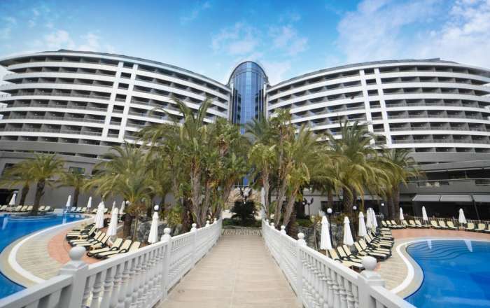 Situated 17km from Antalya International Airport, Royal Wings Hotel provides unprecedented luxury and an abundance of facilities to keep all types of holidaymaker entertained during their stay. Pools and landscaped gardens meander through the grounds amid sun loungers and outdoor food and beverage facilities. The resort also boasts an amusement park, an aqua park, a mini club for the little ones, a cinema and golden sandy beaches of the Mediterranean. Royal Wings Hotel prides itself on the standard of service offered after recently undergoing a refurbishment, it is the perfect setting for a relaxing escape and a slice of authentic Turkish culture.