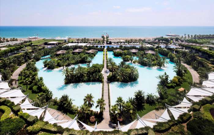 A dream of rounded lagoons and award-winning pastimes, Maxx Royal Belek Golf Resort sits on the sun-soaked shores of Belek overlooking a captivating private sand beach to relax on. Stunning interiors include a range of stylish bars and restaurants, including an indulgent chocolate café, with serene accommodations to escape to. Take a wander onto the hotel's own dreamy pier and look out over turquoise waters or practice your swing in the championship golf course with on-site clubhouse. The Aven Royal Spa adds the finishing relaxing touches to your stay with a selection of pampering treatments to enjoy whilst incredible family facilities including a teens club make this a perfect family escape.